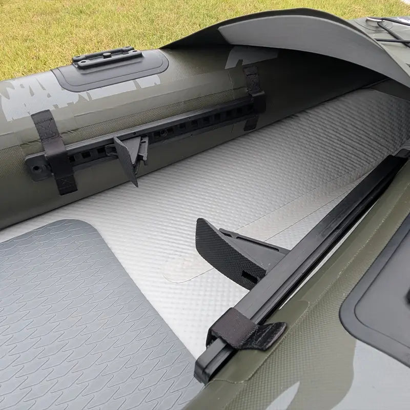 The Quest Angler has 3 chambers - 2 lower-pressure side chambers and a high-pressure dropstitch floor all with the same valve type. Although we have provided a fin, you don’t need to clip it in, the fin box is there for use with a propeller.